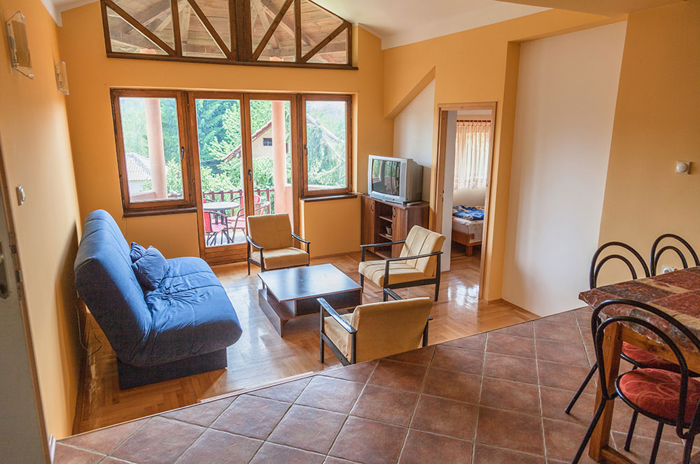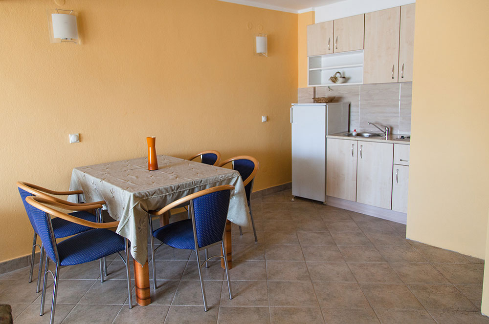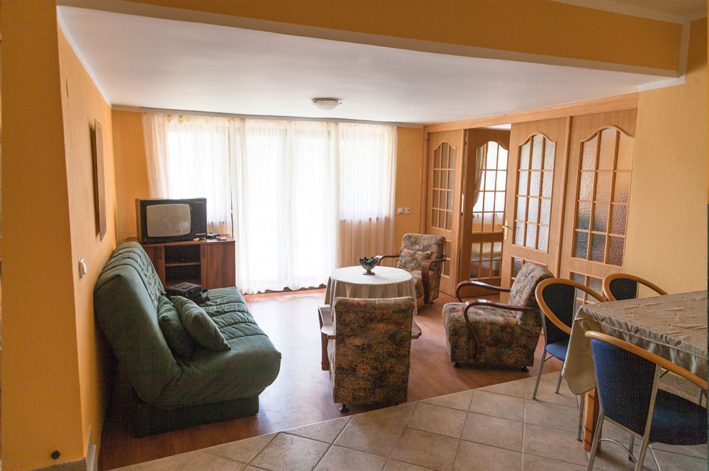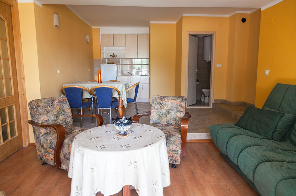 Svi naši apartmani opremljeni su dobrim nameštajem, kuhinjskim elemntima i posuđem (kompletno opremljene kuhinje) i kupatilom.